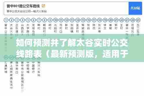 随着科技的进步和城市公共交通的发展,了解并预测城市的实时公交线路表对于出行来说至关重要,本文将指导初学者和进阶用户如何预测并获取太谷市最新实时公交线路表信息,确保您出行无忧,请跟随以下步骤操作。