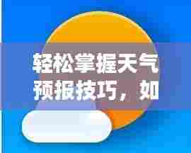 除了以上要点外,我们还可以通过一些技巧提高查询效率,收藏常用的天气预报网站或应用程序,以便快速访问;设置天气预报提醒功能,及时获取最新预报信息;与其他用户交流天气情况,获取更多参考信息,掌握正确的查询方法和理解预报信息对于我们应对日常天气变化至关重要。