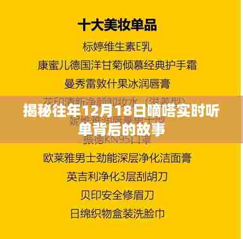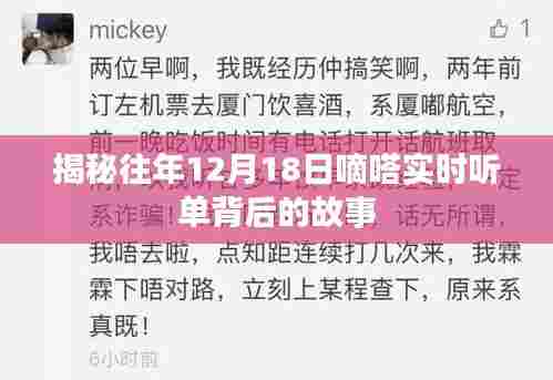 亲爱的小红书社区的朋友们,今天我们来聊聊一个大家都可能关心的话题——往年12月18日嘀嗒实时听单到底是怎么回事?在这个数字化时代,我们生活的方方面面都与各种APP息息相关,而嘀嗒作为一款实时听单软件,更是受到了广大用户的喜爱,就让我们一起回顾那个特殊日子的嘀嗒实时听单情况,探寻背后的故事。