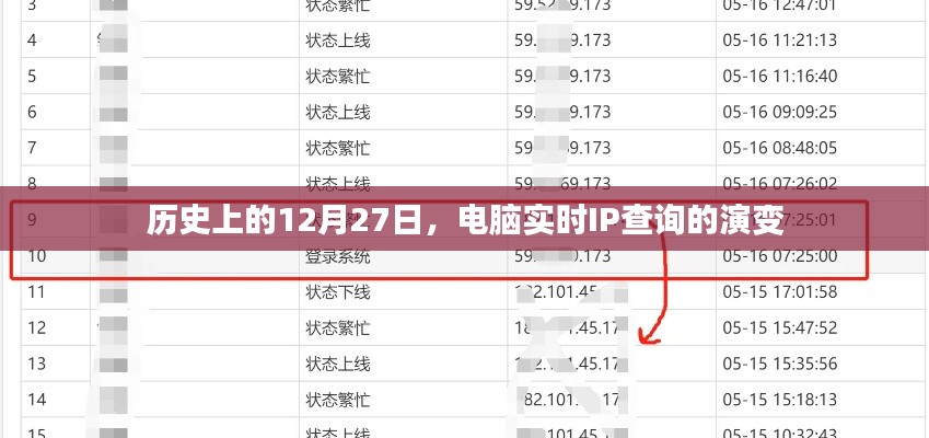 随着科技的飞速发展,电脑实时IP查询技术已成为现代社会不可或缺的一部分,从早期的网络拓扑结构到现在的云计算和大数据环境,IP查询技术一直在不断地进步,本文将通过回顾历史上的12月27日,探讨电脑实时IP查询技术的演变及其对社会发展的影响。
