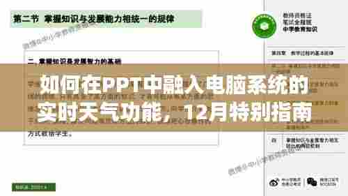 随着科技的进步,多媒体演示文稿(PPT)的制作也日益丰富多彩,特别是在临近年末的特殊时期,如何在PPT中融入更多动态元素,如实时天气信息,以增添演示的生动性和实用性变得尤为重要,本文将指导你如何在PPT中巧妙地加入电脑系统的实时天气功能,让你的演示更具吸引力。