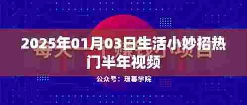 随着科技的飞速发展和互联网的普及,我们的生活变得越来越丰富多彩,每一天,我们都能从各种渠道获取到许多有用的信息和知识,短视频平台以其直观、生动、有趣的特点,吸引了众多用户的关注,本文将围绕“2025年01月03日生活小妙招热门半年视频”这一主题,介绍一些热门的生活小妙招视频内容,以及它们对我们的日常生活产生的影响。