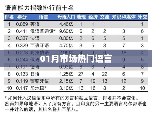 随着科技的飞速发展和全球化的推进,语言及其相关话题始终是人们关注的焦点,我们将探讨一月份市场上备受关注的语言趋势,分析这些语言背后的原因以及它们如何影响我们的生活。