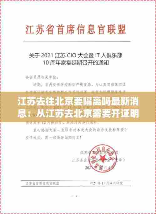 近期,随着疫情的发展和防控措施的调整,很多人关心从江苏去往北京是否需要隔离。根据最新的消息,以下是对江苏去往北京隔离政策的概述。