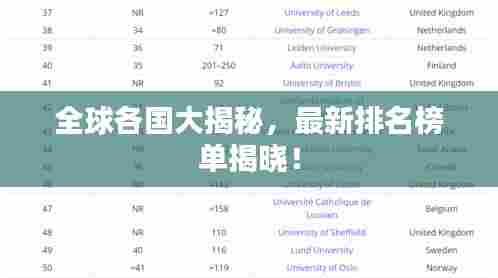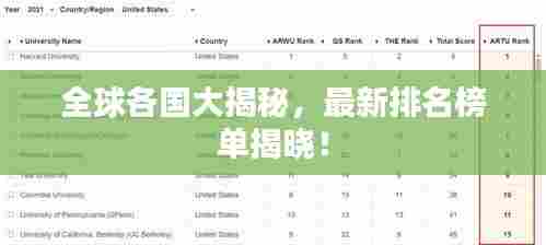 全球各国在政治、经济、文化、科技等方面的发展差异巨大,因此各国的排名也不尽相同,本文将为您盘点世界各国排名,带您了解全球各国的综合实力和发展状况。