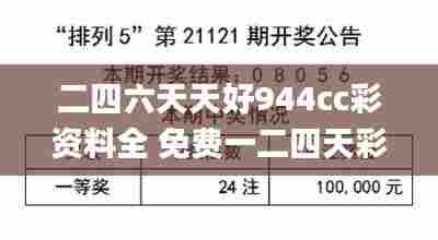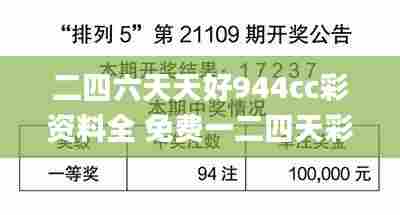 在众多彩票信息网站中,"二四六天天好944cc彩资料全免费"以其独特的设计理念、丰富的彩票信息资源以及安全可靠的保障体系,赢得了众多彩民的青睐。下面我们来详细解析一下这个平台的优势与特点。