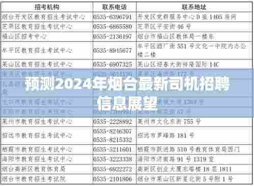 尊敬的求职者们,今天我们将一起探讨并预测2024年烟台的司机招聘信息,随着社会的不断发展,烟台作为重要的港口城市,对于各类司机的需求也在不断变化,我们将聚焦于几个关键要点,带您了解未来的招聘趋势。
