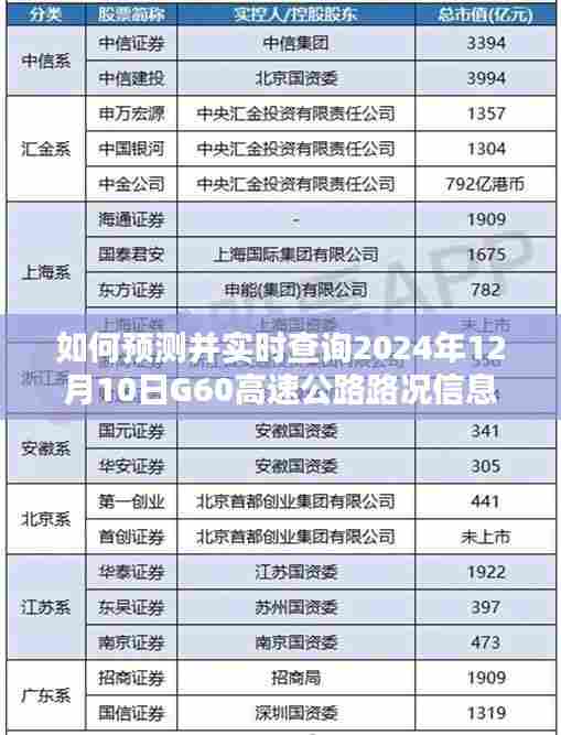 本文将指导读者如何预测并实时查询特定日期(如2024年12月10日)的G60高速公路路况信息,本指南适合所有水平的读者,从初学者到进阶用户均可轻松跟随,我们将详细介绍使用各种在线工具和应用程序来查询路况信息的方法,确保您能够提前做好准备,规划出行路线和时间。