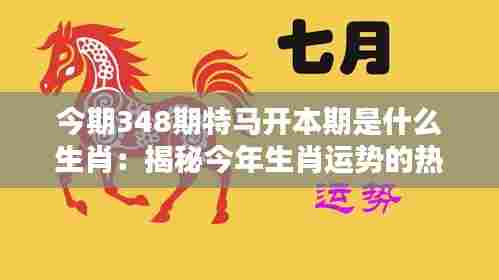 随着新的一年的到来,生肖运势再次成为热点话题,在澳门特别行政区,居民们对生肖运势的关注更是达到了一个新的高度,特别是在讨论今期348期特马开本期是什么生肖时,人们充满了期待和好奇,本文将带您深入了解今年生肖运势的热点话题,揭示澳门在生肖文化传承方面的独特之处。