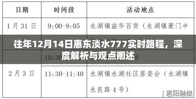 在每年的交通运行体系中,12月14日的惠东淡水777实时路程成为公众关注的焦点,这一特定日期和路线不仅反映了区域交通的繁忙程度,也揭示了公众对于交通状况的不同看法和期待,本文将围绕这一主题展开论述,探讨其背后的各种观点及争议。